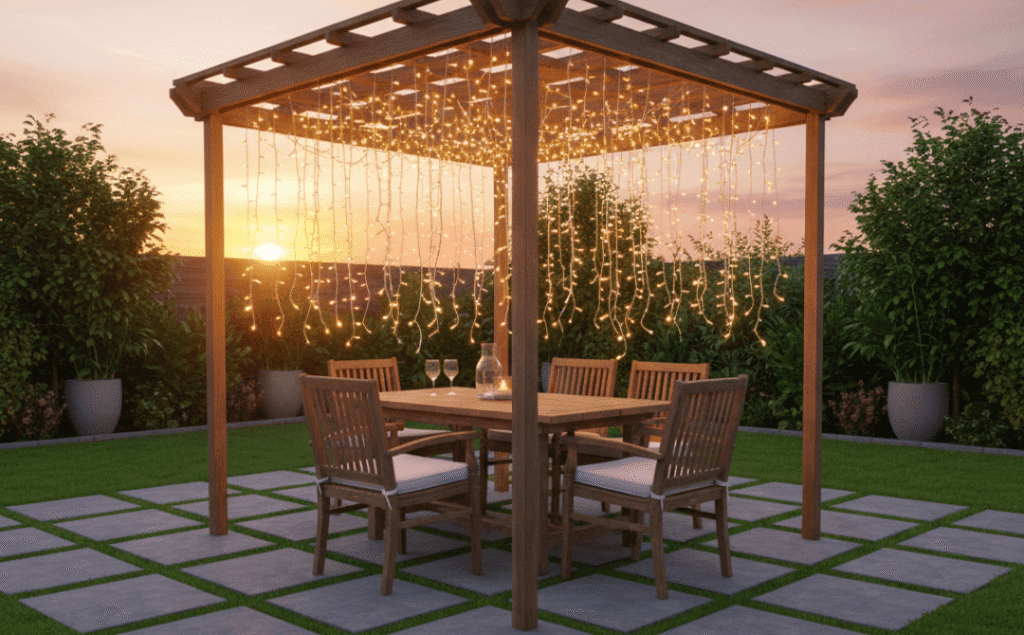 It gives the feel of a resort or restaurant right in your backyard. Some homeowners even combine string lights and a small pergola to make it cozy at night.